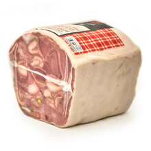 This traditional cold-cut combines all pig head cuts—like cheek, tongue, snout—slow-cooked, mixed with spices, liquor and pistachios, then pressed and vacuum-packed to preserve flavor and freshness.