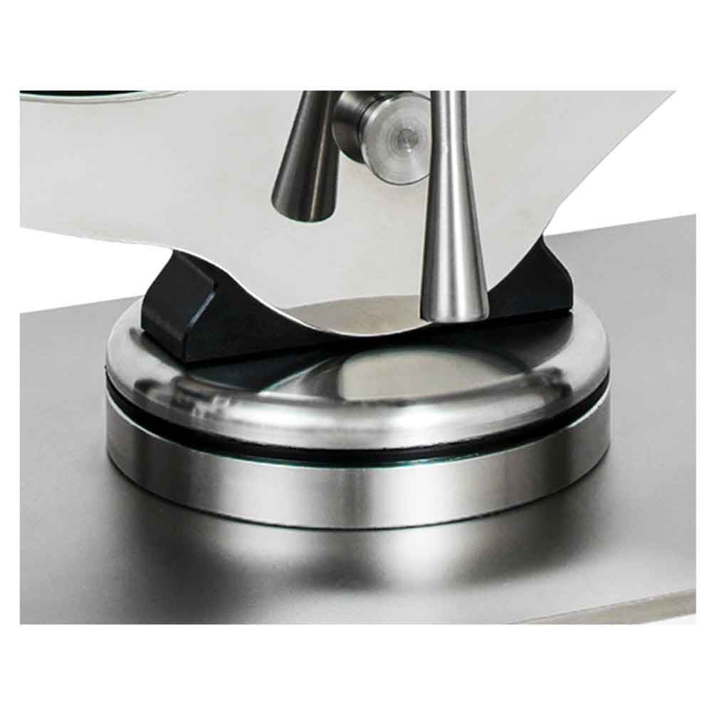 El nuevo modelo Champions nos ofrece una gran libertad de movimientos, su balanceo de 80º nos permite cortar el jamón en posición vertical y hacer el tercer corte del jamón de forma cómoda y eficaz. Nuevo diseño de casquillo 360º más eficiente, con una mínima presión de la maneta frenamos el giro en la posición elegida. Este giro es ideal para el pelado de la pieza, no necesitas moverte de tu lugar para poder acceder a todas las partes del jamón y también ideal para poder mostrar el jamón al cliente antes de lonchearlo.