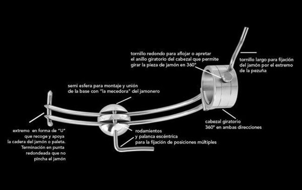 - Accessorio “V” incluso per fissare la punta del prosciutto